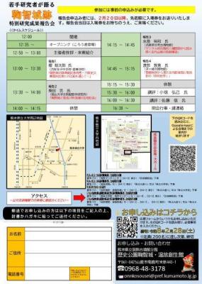 熊本県教育委員会が公募・採用した若手研究者4名が最新の研究成果を発表します。フレッシュな魅力あふれる鞠智城研究をお楽しみください。
