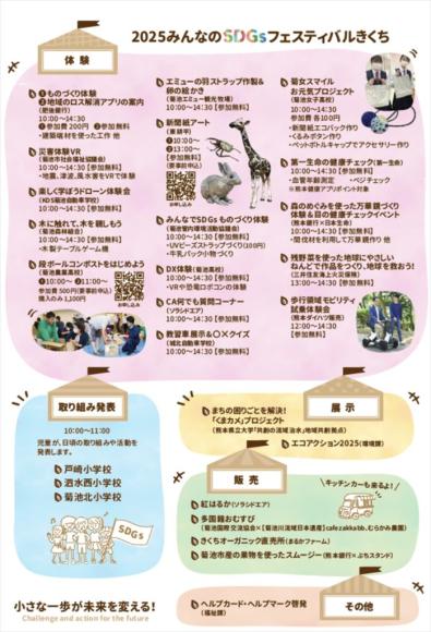 SDGsにつながる市内の学校・企業・団体等の特色ある取り組みを知ってもらうため「2025みんなのSDGsフェスティバルきくち」が開催されます。