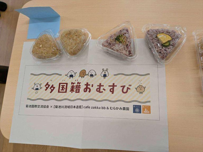 菊池川流域日本遺産と菊池国際交流協会は、コラボしておむすびの販売を行います。菊池市で生活をされている外国人のお母さんとヲムスビプロジェクト参加店舗のcafe zakka bb、むらかみ農園が事前の意見交換会で具材を検討し、試作を重ねて完成したおむすびです。ご賞味ください。